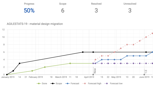 The burnup chart shows how much work has been completed as well as the total amount of work. You can instantly identify problems such as scope creep or a deviation from the planned project path. Jira provides Burndown Charts Burnup Charts Sprint Reports Velocity Charts Version Reports and more.